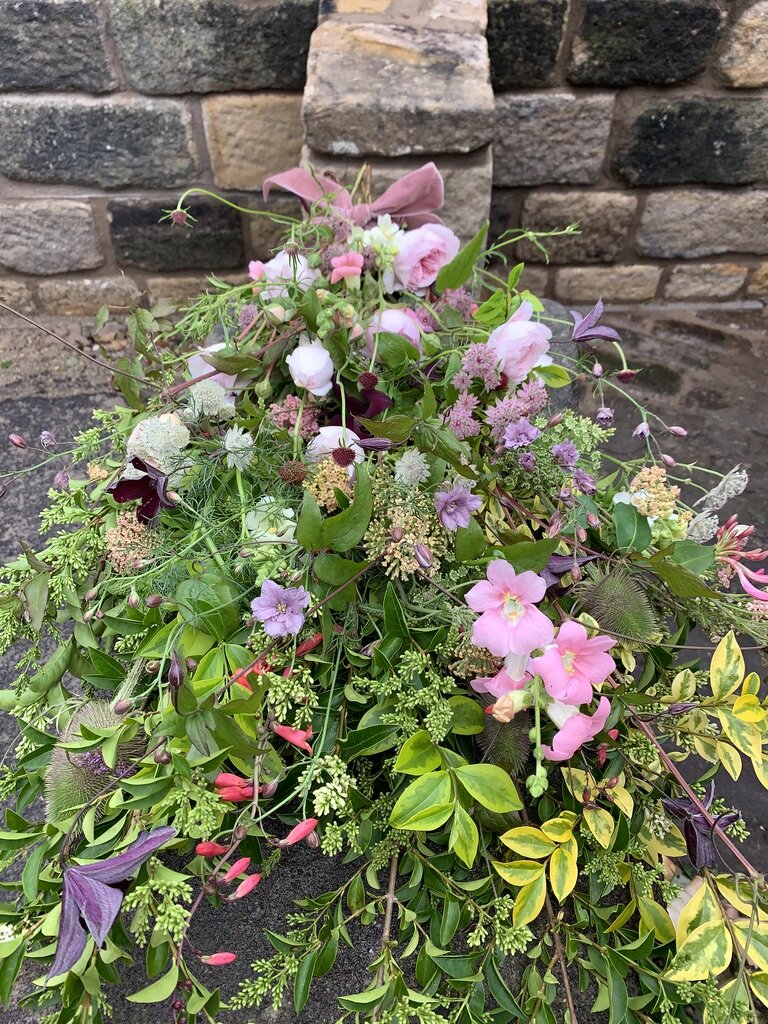 If you are looking for farewell flowers which are a personal, natural garden/wild style then we would love to help. All our arrangements are unique and seasonal using the flowers and foliage grown on our flower farm in the Calder Valley (November - March we will source from other British flower growers as well).
